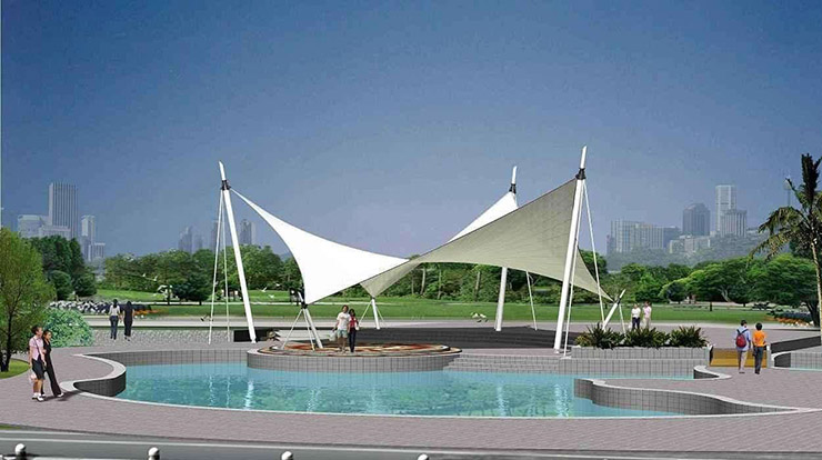 膜材料張力結(jié)構(gòu)自重小的原因在于它依靠預(yù)應(yīng)力形態(tài)而非材料來保持結(jié)構(gòu)的穩(wěn)定性。從而使其自重比傳統(tǒng)建筑結(jié)構(gòu)的小得多,但卻具有良好的穩(wěn)定性。